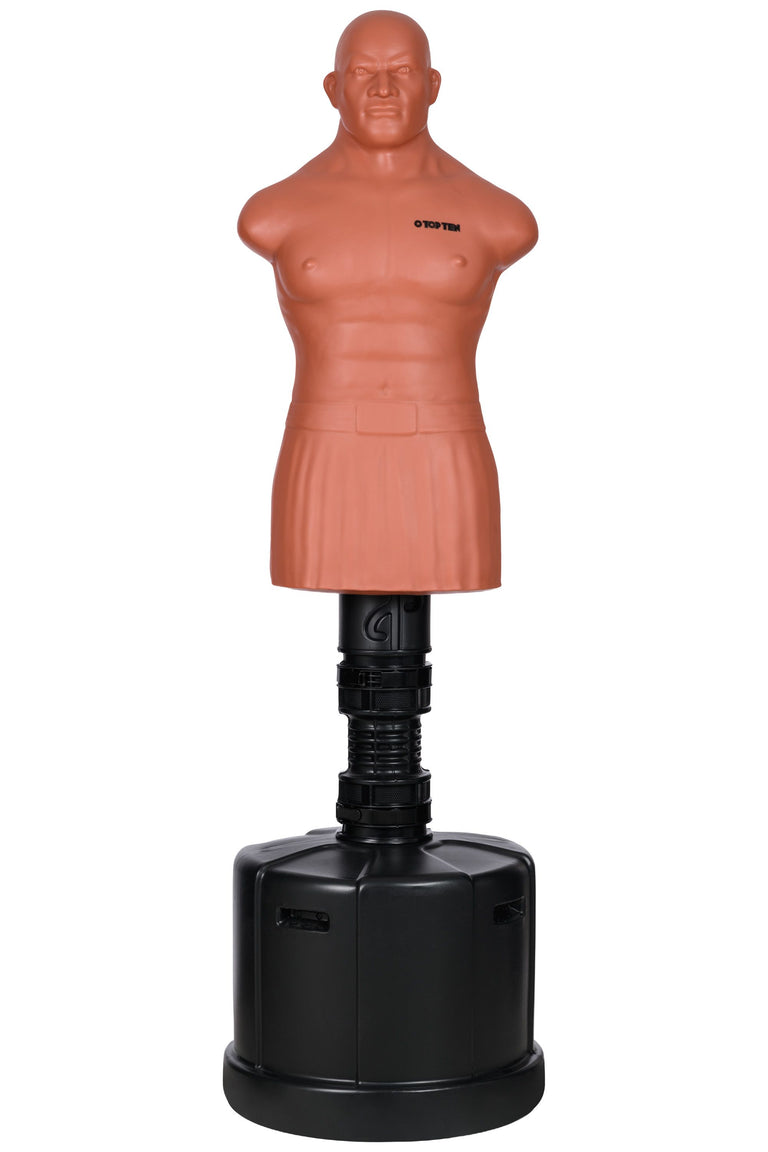 De TOP TEN “Punch Bro” is een staande bokspartner die altijd voor je klaarstaat en de zwaarste trainingen zonder klagen kan doorstaan. Zijn gedetailleerde ontwerp maakt de “Punch Bro” een realistisch trainingsdoel. De hoes van 5 mm dik rubber is bijzonder robuust en duurzaam. Afhankelijk van of de ronde basis met zand of water is gevuld, weegt de “Punch Bro” tussen de 95 en 150 kg.
