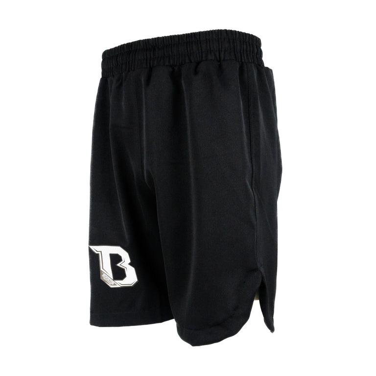 - Competition-safe design – geen zakken - Lichtgewicht, sneldrogend materiaal - Perfect voor boksen, MMA, kickboksen en grappling - Elastische tailleband met zijsplitten voor volledige mobiliteit - Stijlvol geborduurd ‘B’-logo