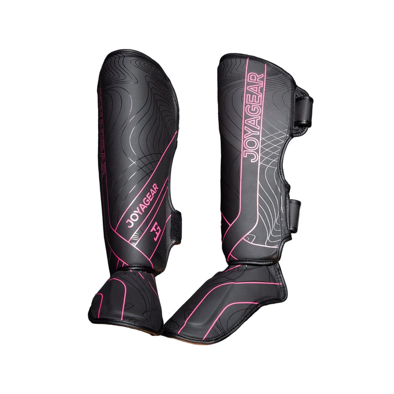 Met een elegant gevormd design, comfortabele voering en een opvallende zwart/roze stijl zijn deze scheenbeschermers niet alleen functioneel, maar zien ze er ook krachtig uit in de gym.