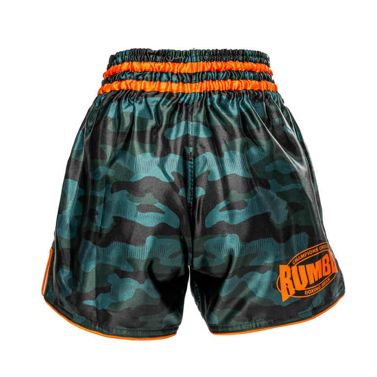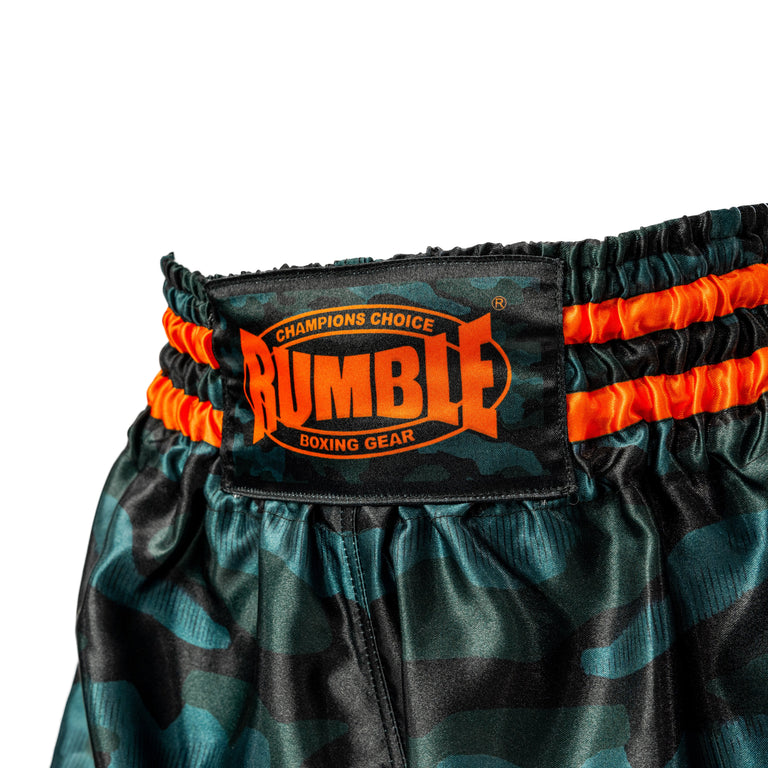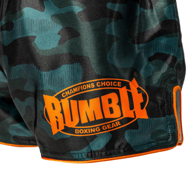 Kickboksshort Rumble Boxing Gear RS-105Kickboksshort van Rumble Boxing Gear in Army/Oranje! Dit model heeft een elastieke band met een touwtje aan de binnenkant voor optimale pasvorm.