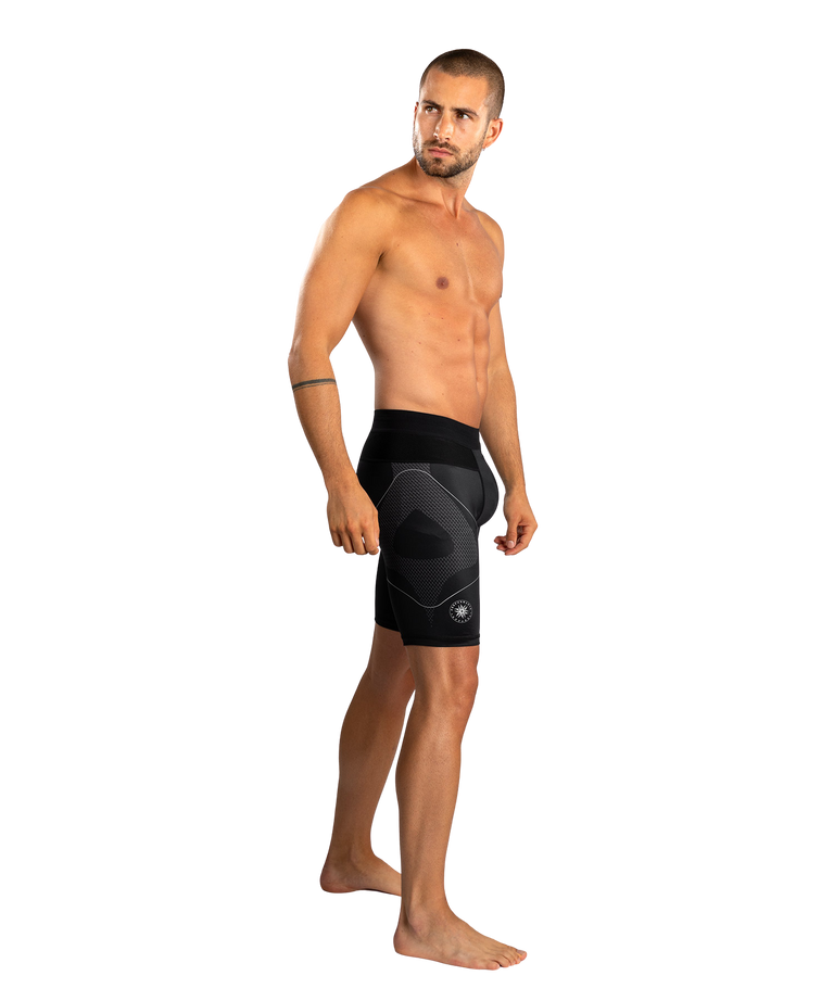Met zijn strakke zwarte basis en stijlvol zilvergrijs design is deze short zowel functioneel als visueel krachtig. Ideaal voor gebruik in de sportschool, op de mat of in de ring. Voor vechters die hun sport zien als kunst én als missie.